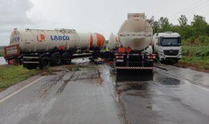 Uma colisão envolvendo duas carretas tanque, ambas carregadas com óleo diesel, bloqueou totalmente o sentido Sul da BR-364, em Rosário…