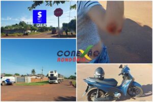 Mulher sofre queda de motocicleta após ciclista avançar preferencial em Pimenta Bueno