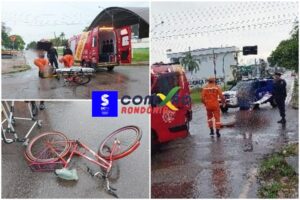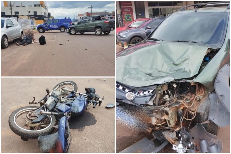 Motociclista colide com carro estacionado e fica ferido em Pimenta Bueno