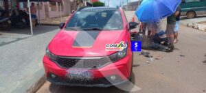 Colisão entre carro e motoneta deixa duas pessoas feridas em Cacoal