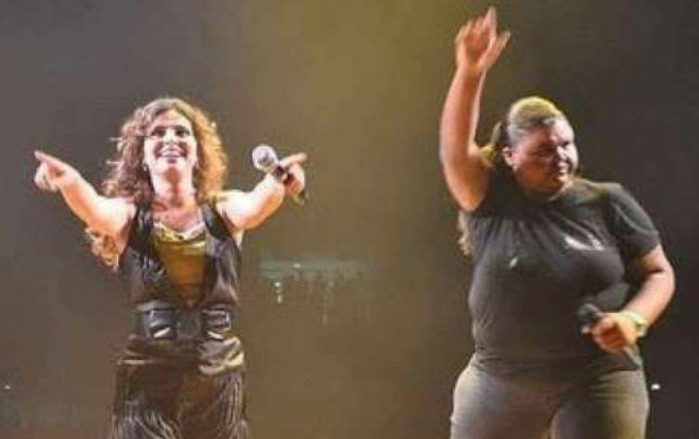 Rejane Silva de Magalhães (à direita na foto) está processando a cantora e pastora Aline Barros na Justiça do Trabalho