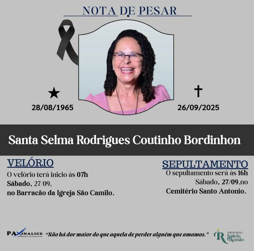 Morreu neste sábado (27), aos 60 anos, Santa Selma R. C. Bordinhon, fundadora da Casa de Acolhida São Camilo, em Cacoal. Ela enfrentava um câncer agressivo nos últimos meses.