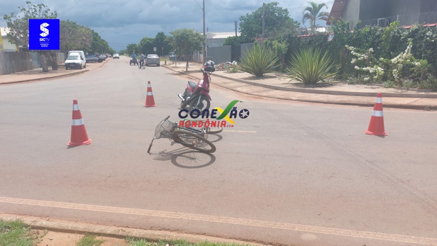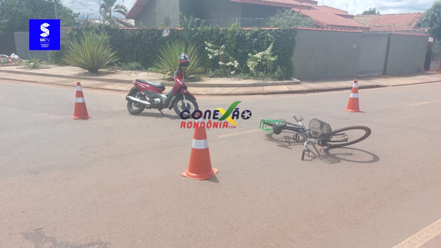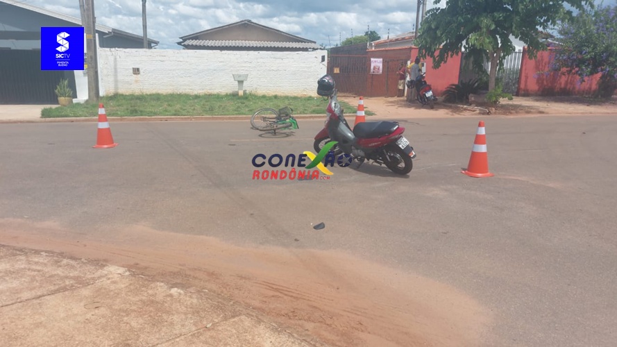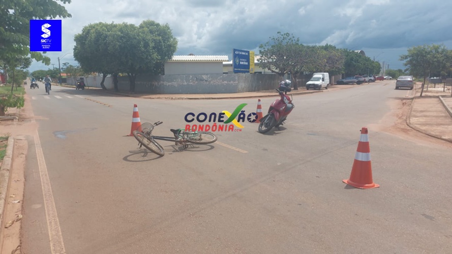 Um acidente envolvendo uma motoneta e uma bicicleta foi registrado no início da tarde desta terça-feira, 25 de novembro, no cruzamento da Avenida Curitiba com a Rua Padre Feijó, em Pimenta Bueno.