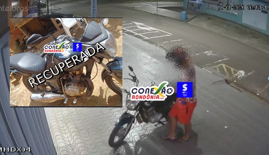 Por volta de 0h12 desta sexta-feira, 16 de janeiro, um menor de idade foi flagrado por uma câmera de segurança enquanto furtava uma motocicleta em Espigão do Oeste (RO).