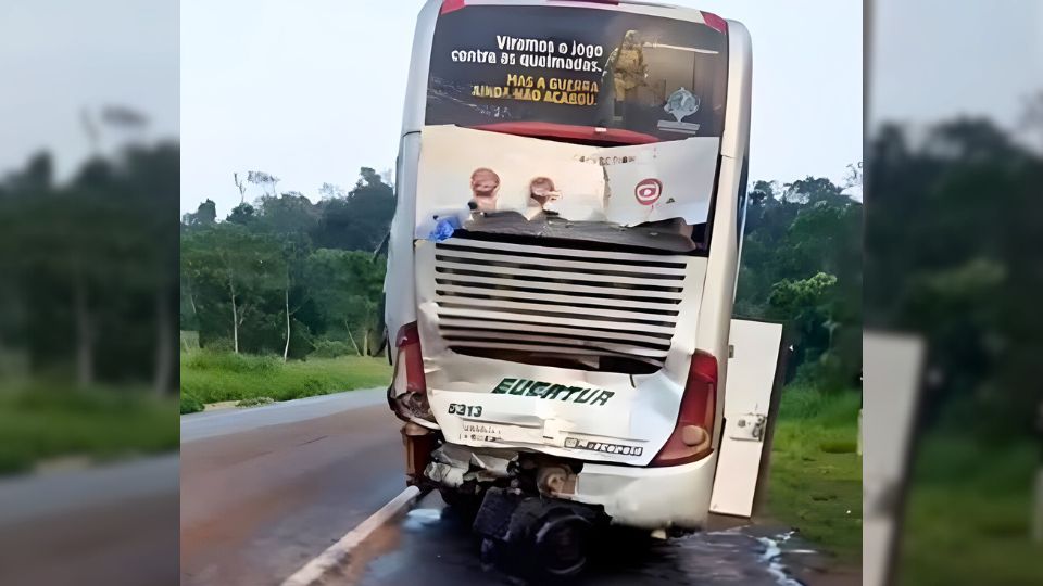 A batida causou grandes danos na traseira do ônibus e destruiu parte da frente da carreta. Apesar da gravidade do impacto, não houve feridos graves. O motorista da carreta sofreu escoriações leves nas mãos e pernas, enquanto os passageiros do ônibus saíram ilesos, apenas assustados.
