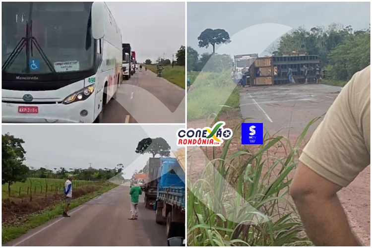 Na manhã desta terça-feira (10), um caminhão que transportava gado tombou na RO-010, provocando a interdição da rodovia por várias horas e causando transtornos aos motoristas que trafegavam pelo trecho.