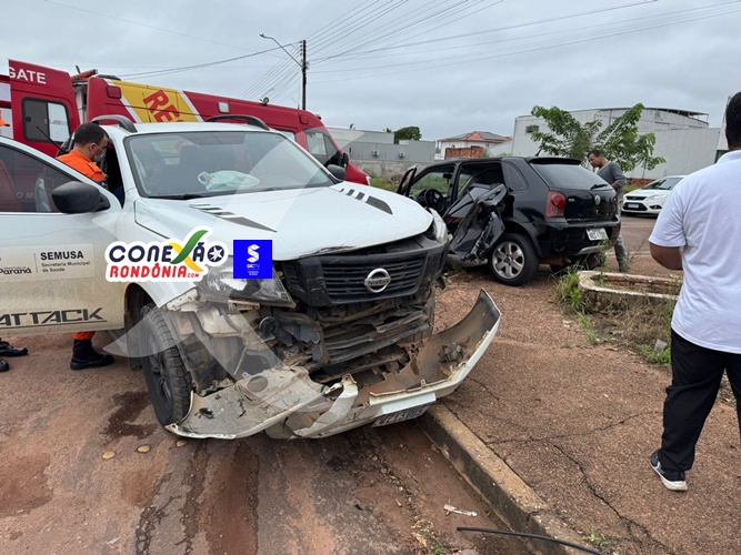 Um acidente de trânsito envolvendo uma caminhonete da Prefeitura de Ji-Paraná e um veículo modelo Gol foi registrado no cruzamento das vias Costa e Silva com Rolim de Moura, em Pimenta Bueno.