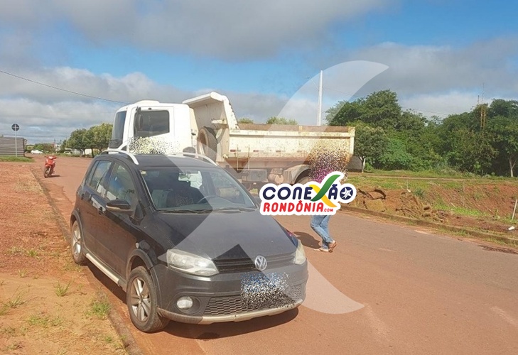 O sinistro ocorreu no momento em que o caminhão realizava uma manobra na via para a descarga de materiais. O condutor de um VW CrossFox, ao tentar seguir pela via, acabou colidindo com a lateral do veículo de carga.