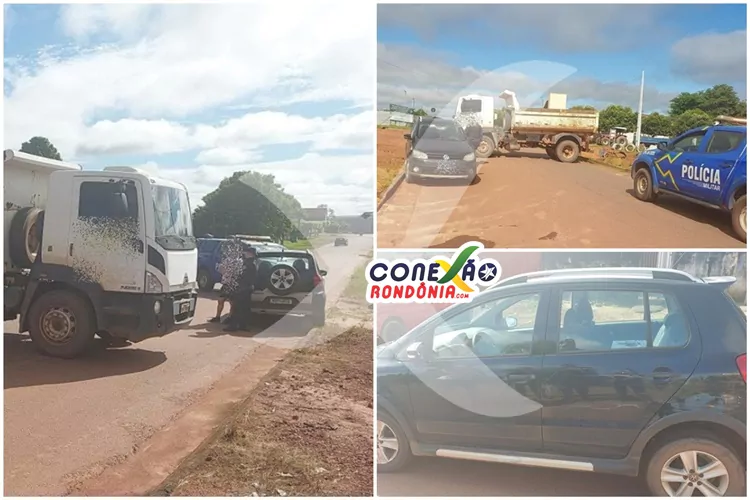 Um acidente de trânsito envolvendo um veículo de passeio e um caminhão de carga foi registrado na manhã desta terça-feira (02), no cruzamento da Rua Hermínio Vieira com a Avenida Gilio Alves da Costa, em Pimenta Bueno. A Polícia Militar foi acionada para realizar o registro da ocorrência, que resultou apenas em danos materiais.