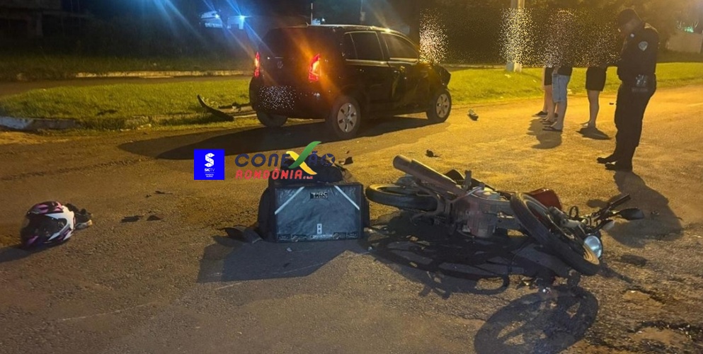 Um acidente de trânsito foi registrado na noite de domingo (21), em um cruzamento do bairro Green Ville, em Cacoal. A ocorrência envolveu um automóvel e uma motocicleta.