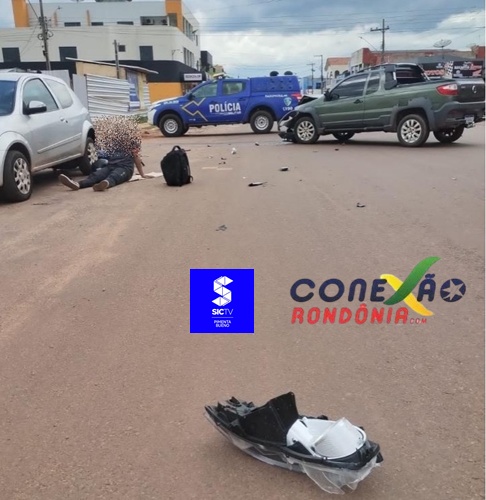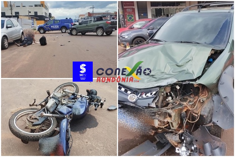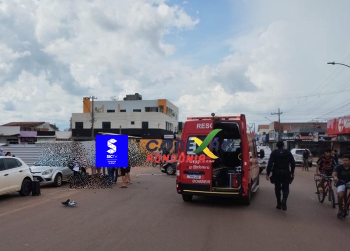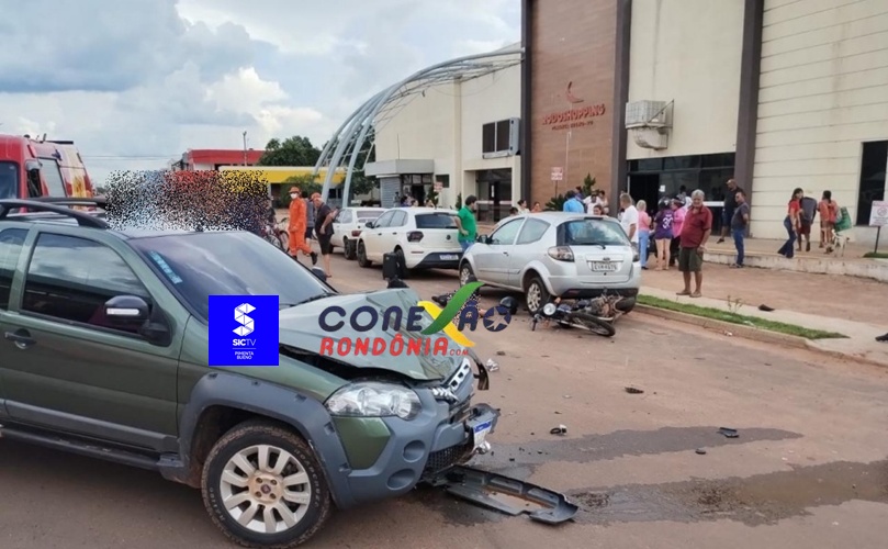 Três pessoas ficaram feridas em um acidente de trânsito ocorrido na tarde do último sábado (13), na Avenida Cunha Bueno, em frente ao Terminal Rodoviário, no bairro Pioneiros, em Pimenta Bueno (RO). A colisão envolveu um veículo utilitário e uma motocicleta, em um trecho de grande movimentação.