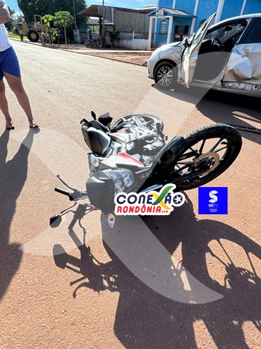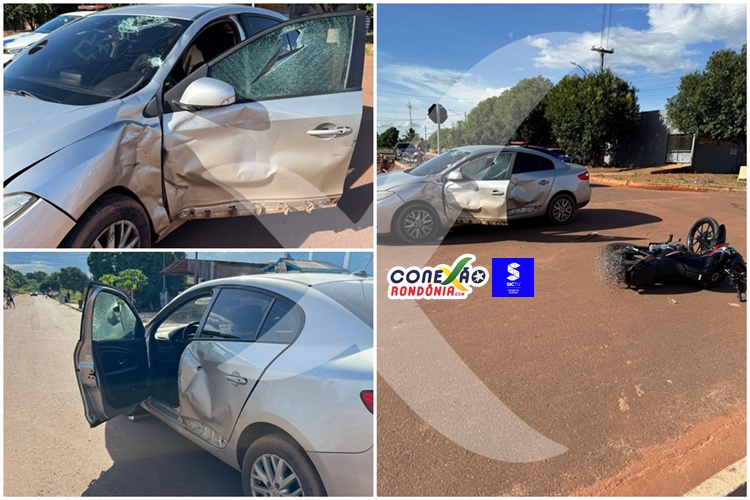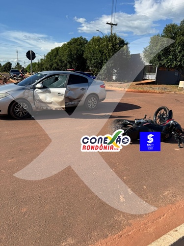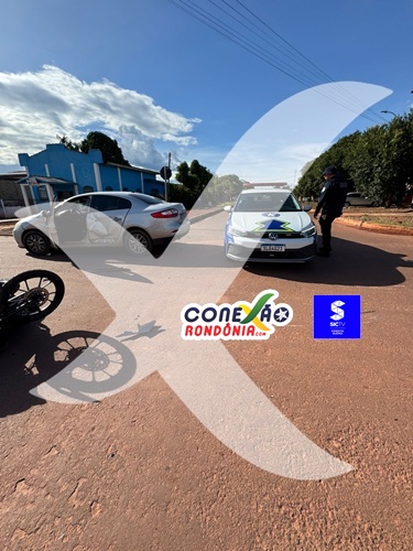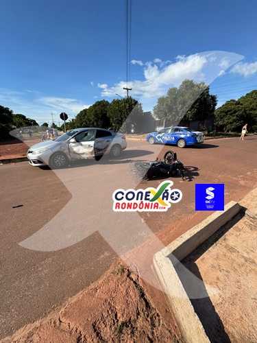 Um grave acidente de trânsito foi registrado na tarde deste sábado, 21 de fevereiro, no bairro Jardim das Oliveiras, em Pimenta Bueno. A colisão, que envolveu um carro e uma motocicleta, ocorreu no cruzamento das ruas Prudente de Moraes com Padre Adolfo.