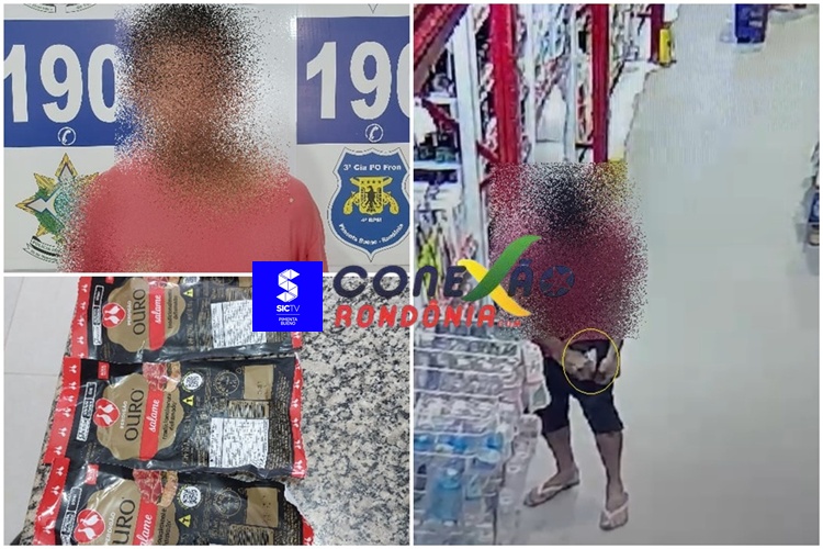 Um homem foi detido na tarde desta sexta-feira (19) após ser flagrado tentando furtar produtos de um supermercado, localizado na Avenida Carlos Dorneje, em Pimenta Bueno (RO).