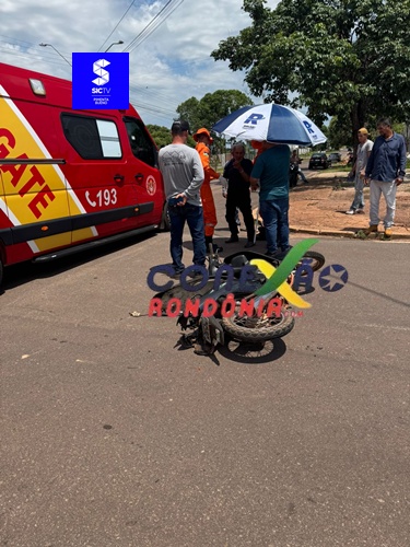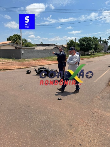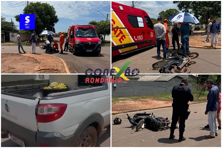 Na manhã desta terça-feira, 28 de outubro, um acidente de trânsito envolvendo uma motoneta Biz e um veículo Fiat Strada foi registrado no cruzamento das vias Rotary Club com Inconfidentes, em Pimenta Bueno (RO).