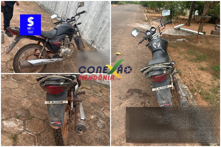 Na tarde desta sexta-feira, 10 de outubro, por volta das 15h20, uma equipe da Polícia Militar realizava patrulhamento ostensivo pelo bairro Jorge Teixeira, em Espigão do Oeste, quando se deparou com uma motocicleta parada à beira da via, apresentando a placa de identificação danificada, restando visível apenas a tarjeta com o nome do município de Cacoal/RO.
