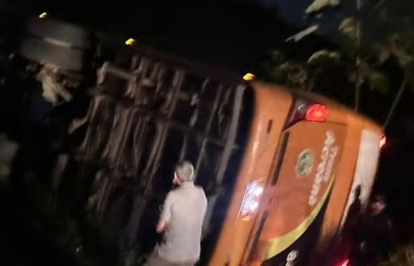 Ainda conforme a nota, o motorista perdeu o controle do ônibus após bater em um buraco no lado esquerdo da pista. O impacto fez com que o veículo deslizasse para fora da rodovia e tombasse.