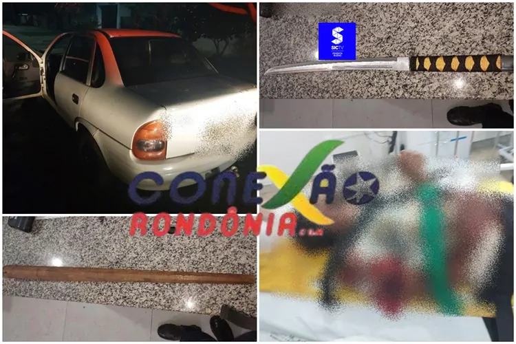 Durante a abordagem, os policiais encontraram dentro do veículo objetos suspeitos, objeto metálico tipo “espada” e um taco de madeira com vestígios de sangue, além de três aparelhos celulares, um deles escondido sob o tapete. Os materiais foram apreendidos.