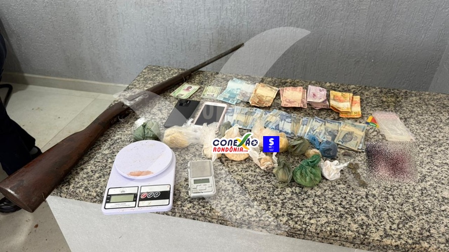 Uma ação da Polícia Militar realizada na manhã desta quinta-feira (19) resultou na apreensão de drogas, dinheiro, balanças de precisão e uma arma de fogo no bairro Nova Pimenta.