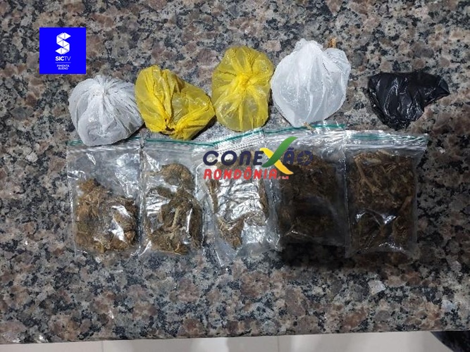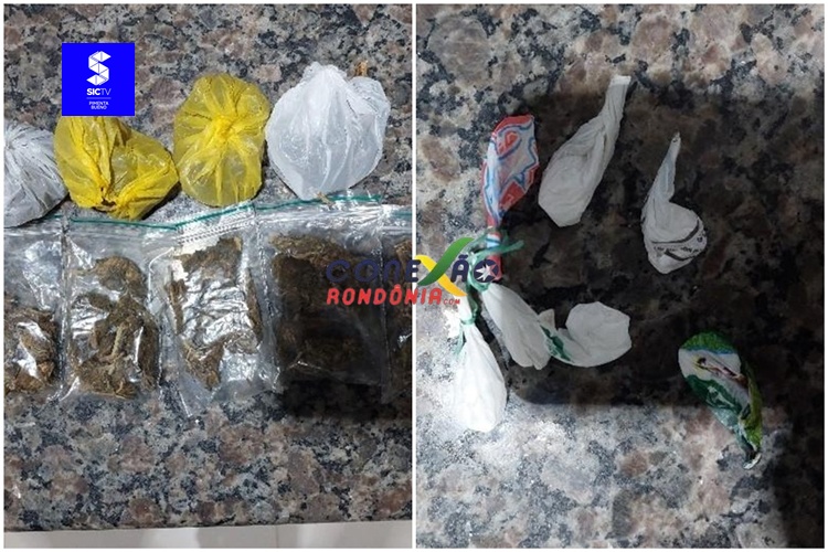 Durante buscas no local, os policiais encontraram 10 porções de substância análoga à maconha, totalizando 65,2 gramas, e 7 porções de substância análoga à cocaína, pesando 4,9 gramas. Parte da droga foi localizada no chão, e o restante estava sobre uma cômoda e na janela do imóvel.