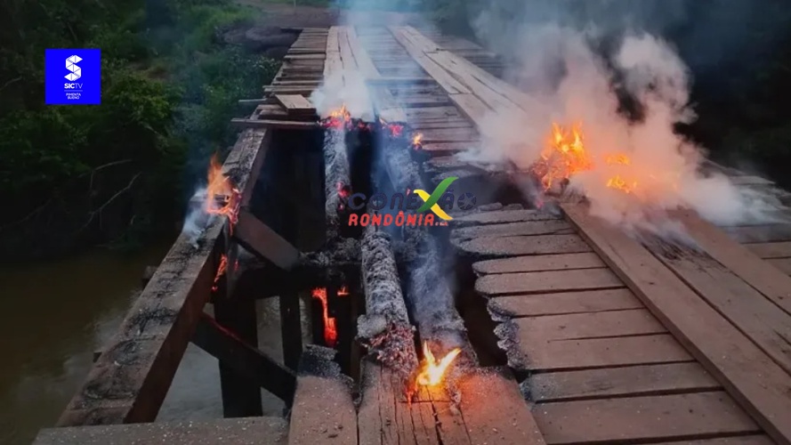 A ponte que liga os municípios de Alvorada do Oeste e Nova Brasilândia D’Oeste, em Rondônia, foi praticamente destruída por um incêndio na noite desta quarta-feira (26). A estrutura fica sobre o rio Novo Mundo e é considerada uma via essencial para proprietários de sítios e fazendas, além de servir como acesso para Castanheiras, Presidente Médici e outras regiões da zona rural.