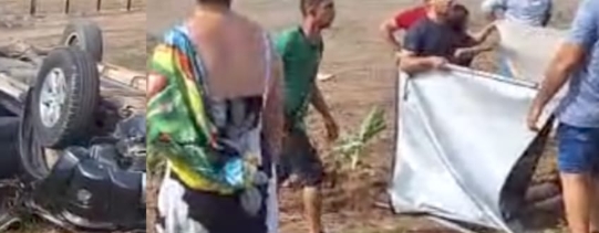 Com o consequentemente capotamento, a caminhonete foi parar fora da rodovia e os três ocupantes, adultos, ficaram com sérios ferimentos.