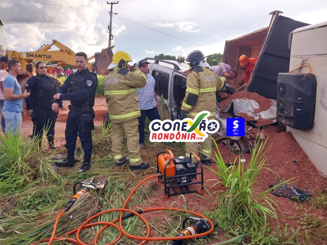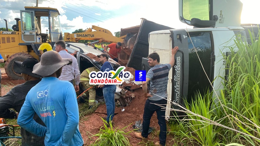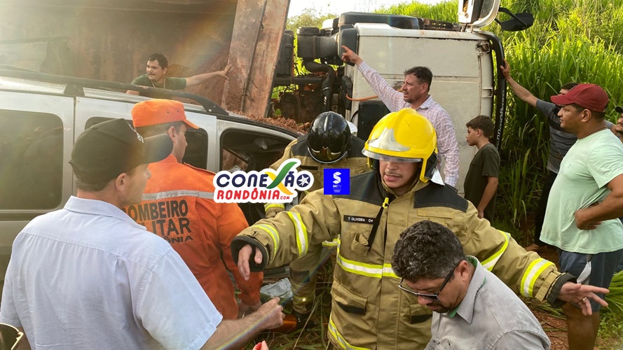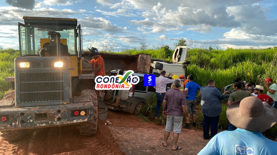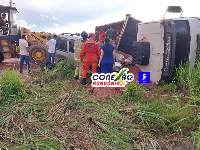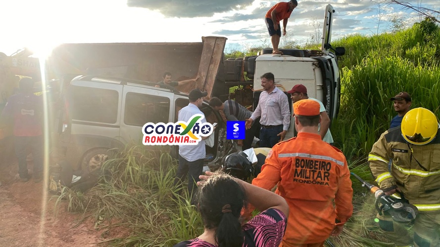 Um grave acidente foi registrado na tarde desta quinta-feira na RO-010, nas proximidades do local conhecido como “Marreta”, em Pimenta Bueno (RO). A ocorrência envolveu um caminhão caçamba e dois carros de passeio.