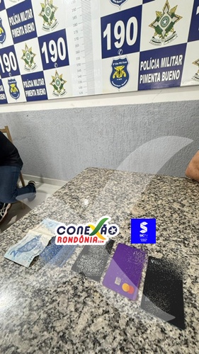 Com ele, foram encontrados cartões bancários em nome de terceiros e uma pequena quantia em dinheiro. Os objetos foram apreendidos e encaminhados junto com o suspeito à Delegacia de Polícia Civil, onde foram adotadas as medidas cabíveis.