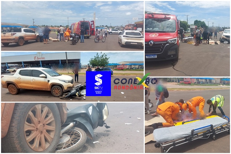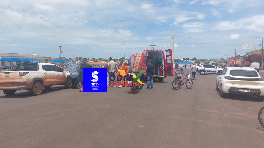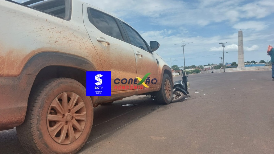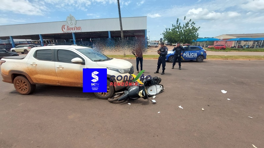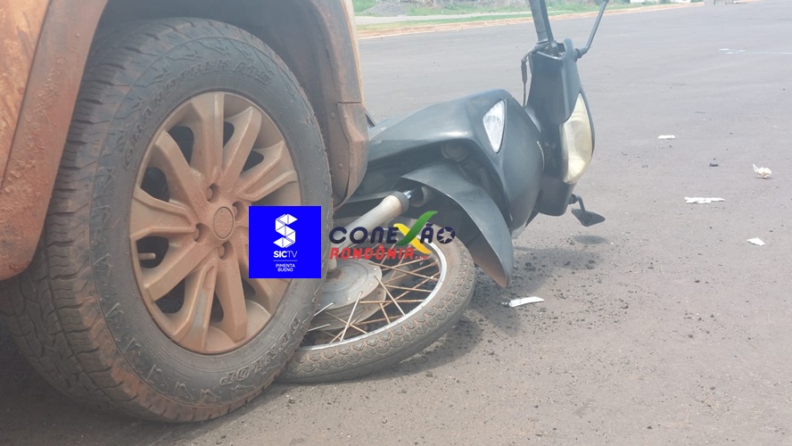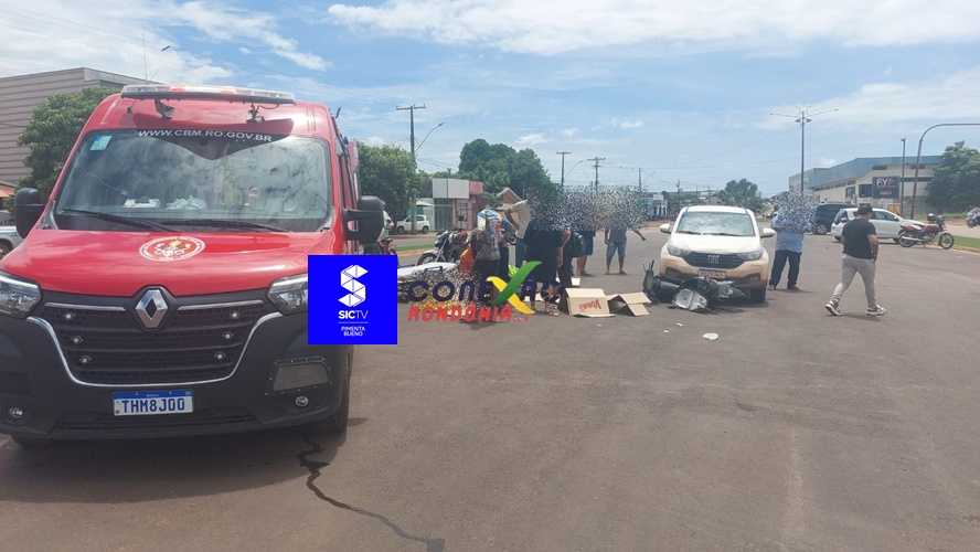 Um acidente envolvendo um carro e uma motoneta foi registrado na tarde desta terça-feira na Avenida Carlos Dornerjes, nas proximidades ao Atacarejo, em Pimenta Bueno.