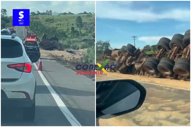 Um internauta, seguidor do Conexão Rondônia, registrou na tarde deste sábado, 1º de novembro, o tombamento de uma carreta às margens da BR-364, entre os municípios de Pimenta Bueno e Cacoal.