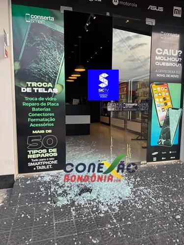 De acordo com informações apuradas pela equipe do *Conexão Rondônia*, dois indivíduos utilizaram uma pedra para quebrar a porta de vidro do estabelecimento e tiveram acesso ao interior do local. Durante a ação, os suspeitos subtraíram dinheiro do caixa e alguns aparelhos celulares.