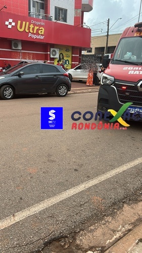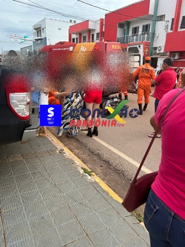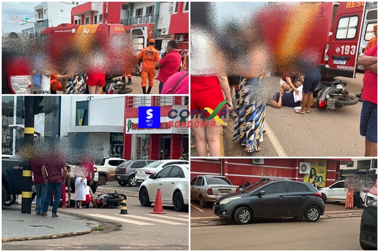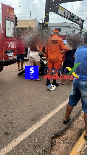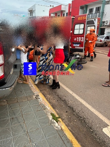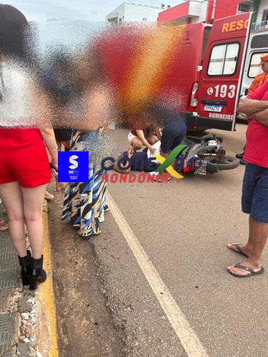 Uma motociclista grávida precisou ser socorrida após se envolver em um acidente de trânsito na tarde desta terça-feira, na Avenida Presidente Kennedy, região central de Pimenta Bueno.
