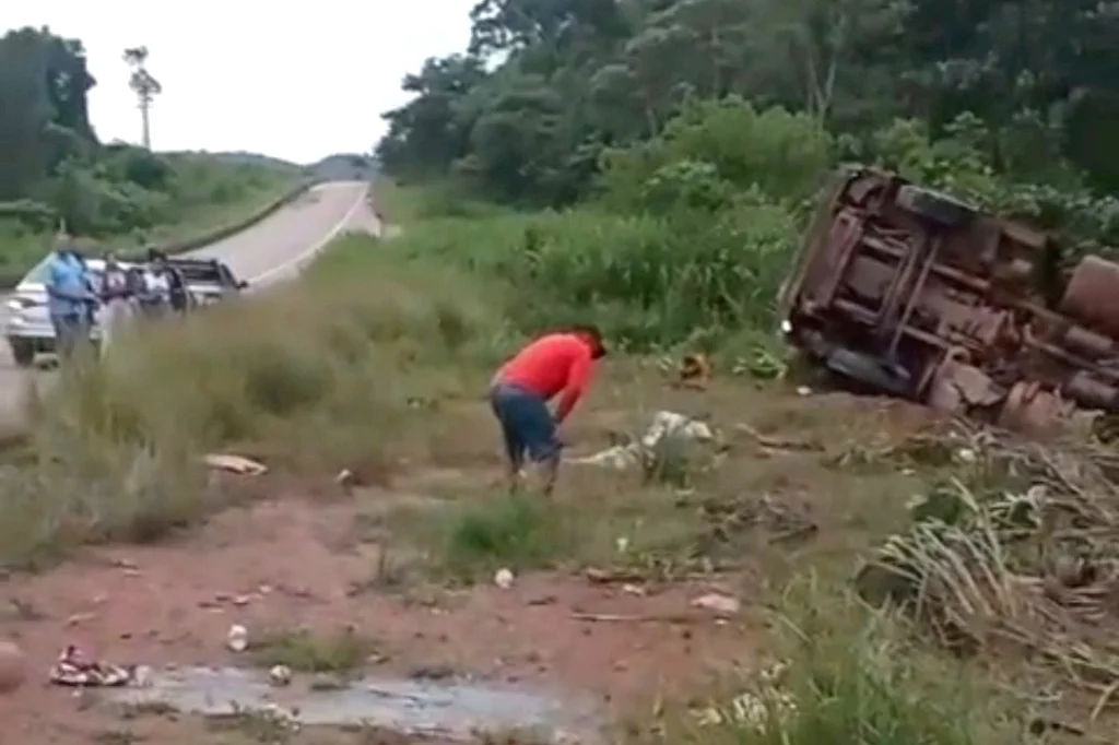 De acordo com as informações, uma mulher que colhia verduras às margens da rodovia, acompanhada do marido, foi atingida pela carreta e morreu no local após ser esmagada pelo veículo de carga. O impacto foi fatal, e a vítima não resistiu aos ferimentos.