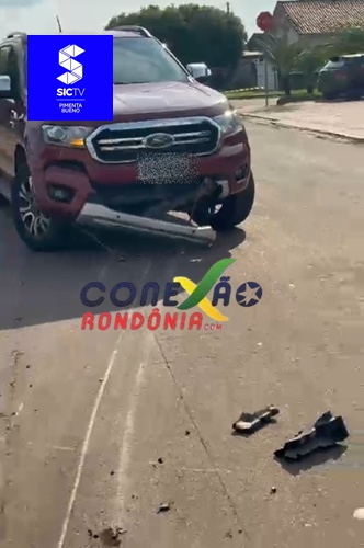 Motoneta é arrastada por cerca de 25 metros após acidente com caminhonete em Pimenta Bueno