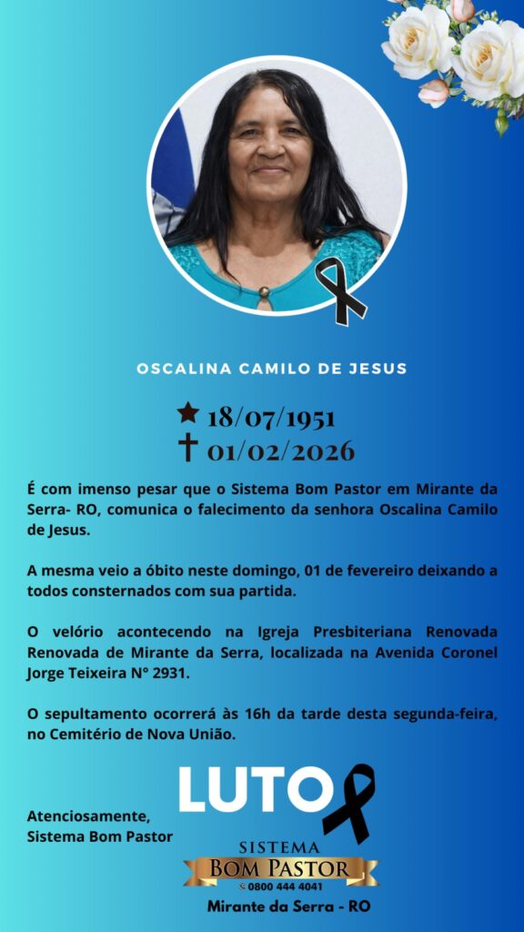 Sistema Bom Pastor emite nota de pesar pelo falecimento de Oscalina Camilo de Jesus