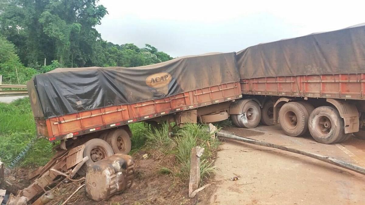 Um acidente envolvendo uma carreta Scânia, de cor branca, placas de Nova Mutum, foi registrado no início da tarde desta segunda-feira (26), no km 567 da BR-364, em Nobres-MT.