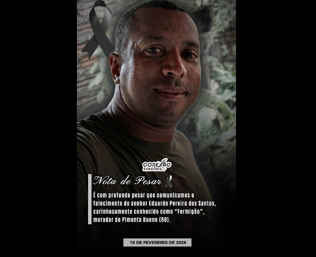 É com profundo pesar que comunicamos o falecimento do senhor Eduardo Pereira dos Santos, carinhosamente conhecido como “Formigão”, morador de Pimenta Bueno (RO).