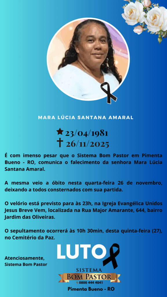 Sistema Bom Pastor em Pimenta Bueno emite nota de pesar pelo falecimento da senhora Mara Lúcia Santana Amaral