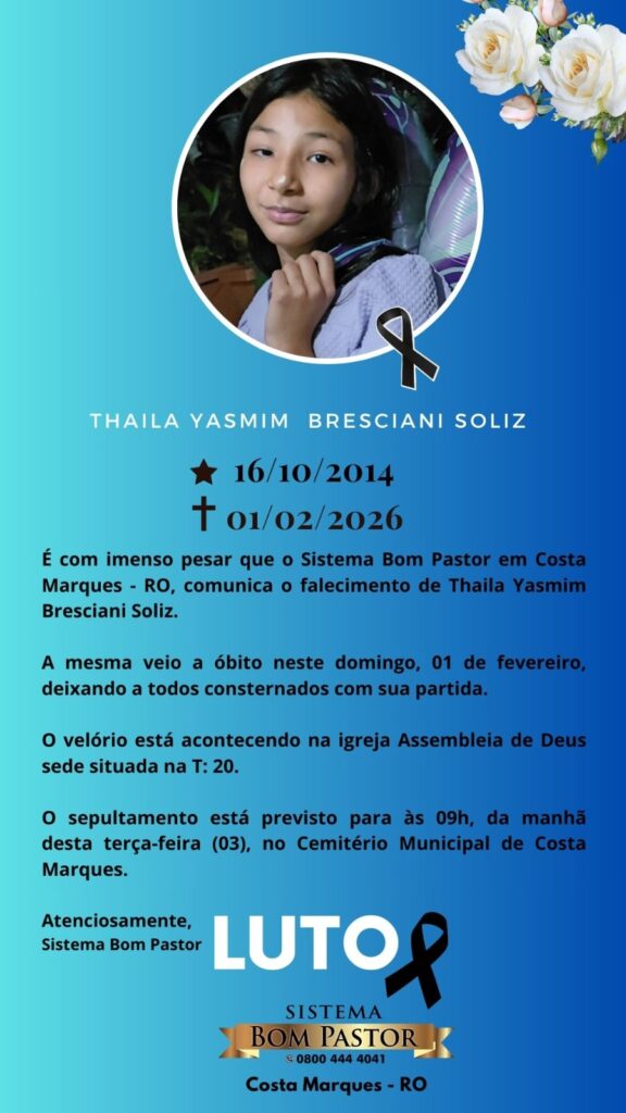 Sistema Bom Pastor emite nota de pesar pelo falecimento de Thaila Yasmim Bresciani Soliz