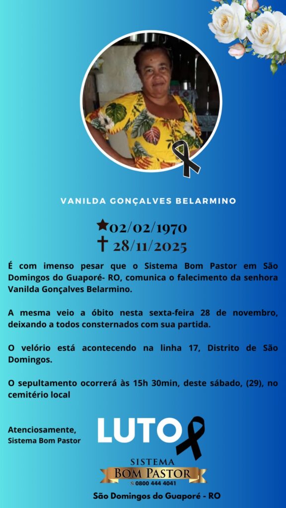 Sistema Bom Pastor emite nota de pesar pelo falecimento da senhora Vanilda Gonçalves Belarmino
