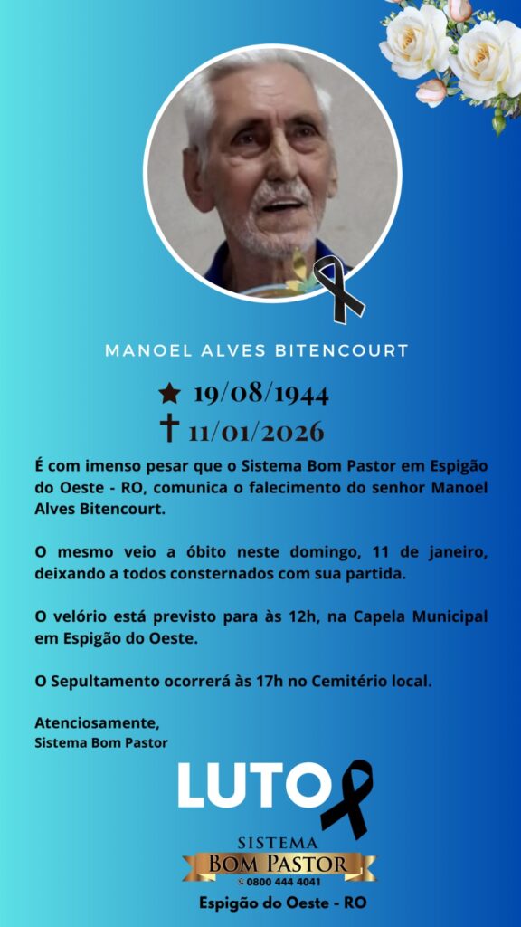 Sistema Bom Pastor emite nota de pesar pelo falecimento de Manoel Alves Bitencourt