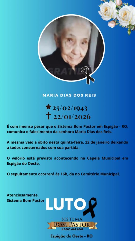 Sistema Bom Pastor emite nota de pesar pelo falecimento de Maria Dias dos Reis