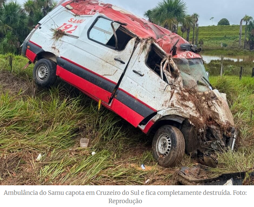 Uma ambulância do Serviço de Atendimento Móvel de Urgência (Samu) sofreu um acidente na tarde desta quarta-feira (24), enquanto trafegava pelo Ramal 3, nas proximidades da BR-364, em Cruzeiro do Sul.