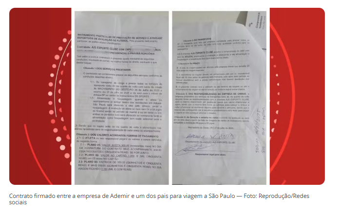 Depois de selecionar alguns dos jovens, os pais foram chamados para uma reunião onde Ademir explicou os detalhes da viagem e apresentou um contrato. O pacote incluía transporte de ônibus (ida e volta), hospedagem e alimentação por quatro dias em São Paulo, ao custo de R$ 900 por atleta.